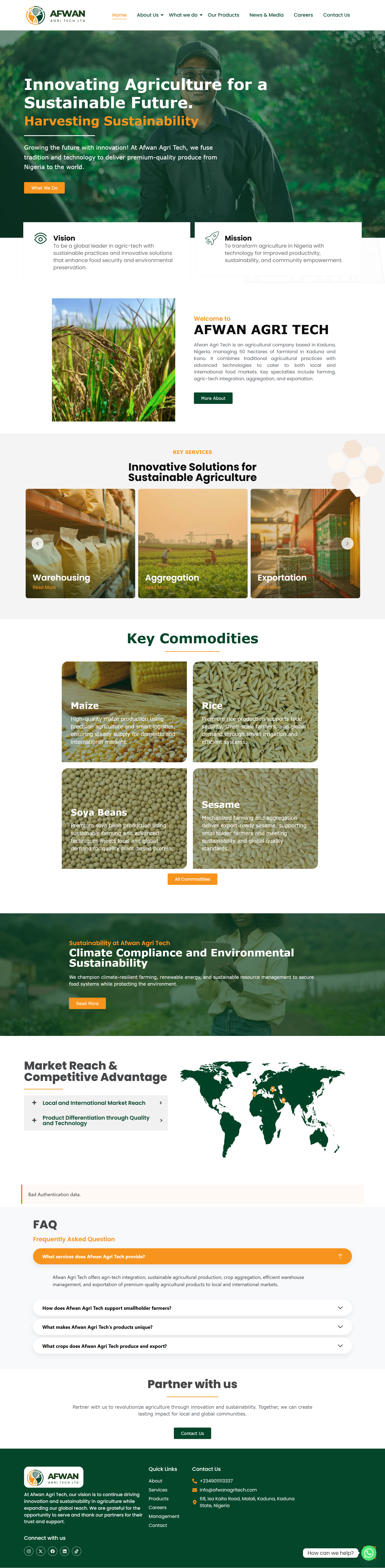 AFWAN Agri-Tech needed a platform that showcased their expertise, provided detailed information about their operations, and positioned them as a leader in modern agriculture. They also wanted the website to serve as a channel for potential clients and partners to connect with the company.